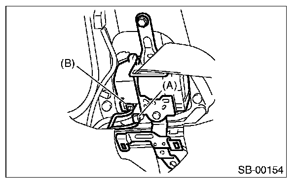 NOTE: Disconnect the tension reducer connector (B) for the seat belt retractor with tension reducer function.