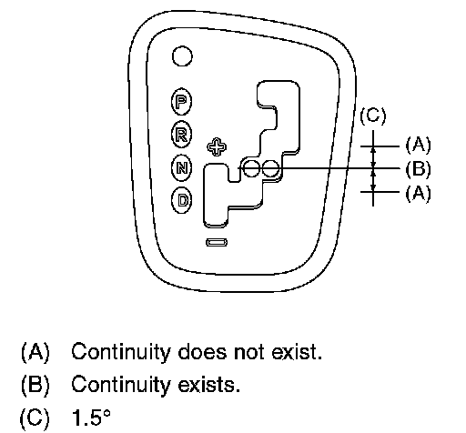 3. Check there is continuity at equal points when the select lever is turned 1.5° in both directions from N range.