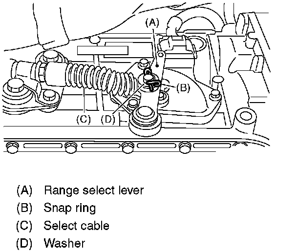 ^ Also check that continuity in ignition circuit does not exist when the select lever is in R and D ranges.