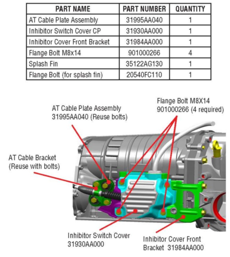 A/T - Inhibitor Switch Cover/Splash Fin Availability