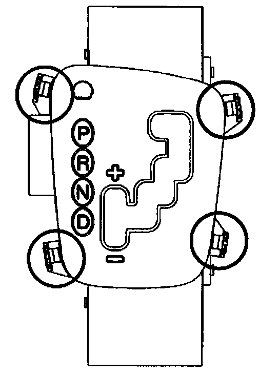 When removing the ring indicator, please note the following. We have found that using a plastic trim removing tool works very well. The transmission ring indicator can best be removed by gently pulling up at the claw position points indicated below. This will lessen the chance of the panel being damaged.