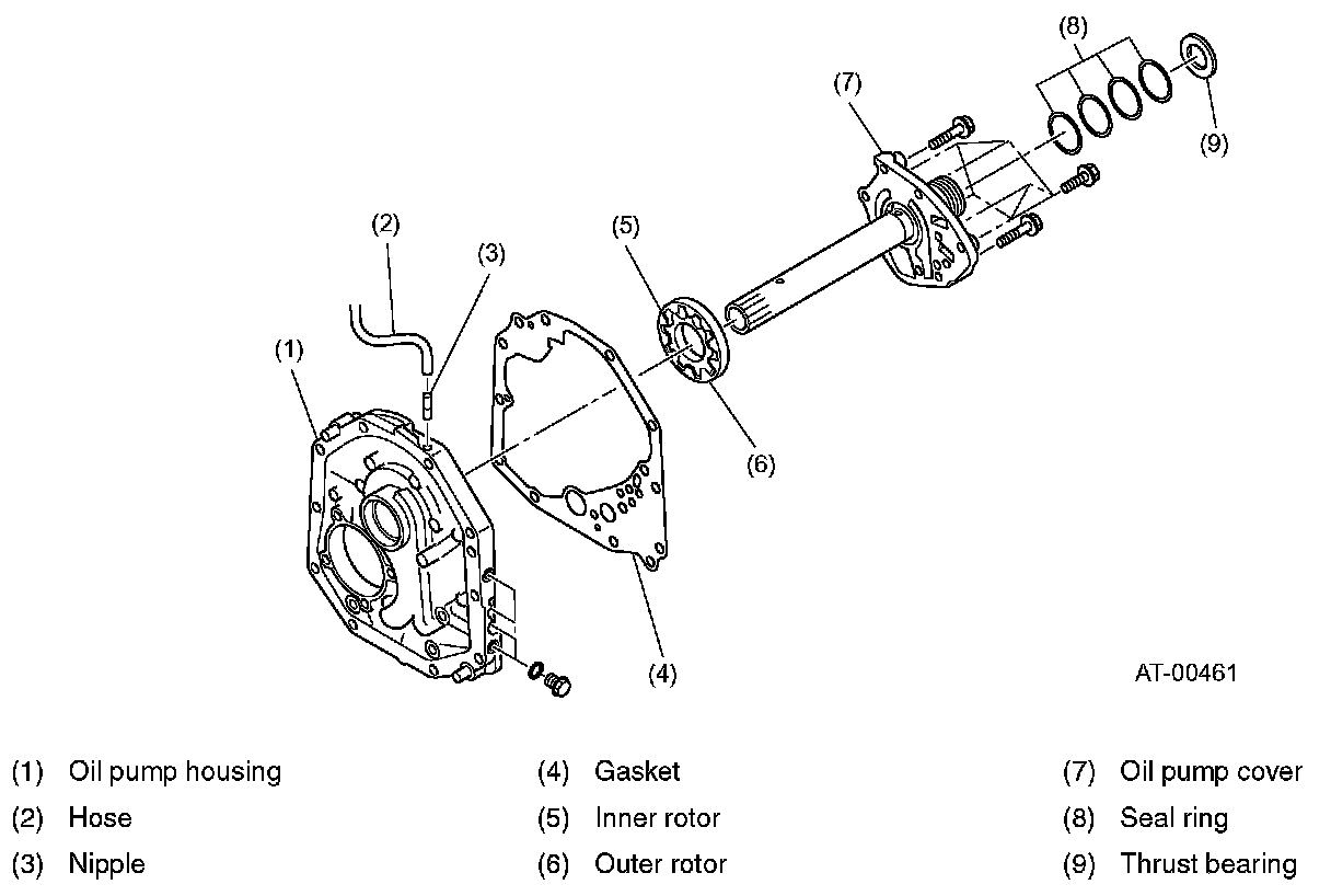 The pump consists of a parachoid rotor pair, a housing and a cover. The inner rotor has nine teeth and the outer rotor has ten teeth.