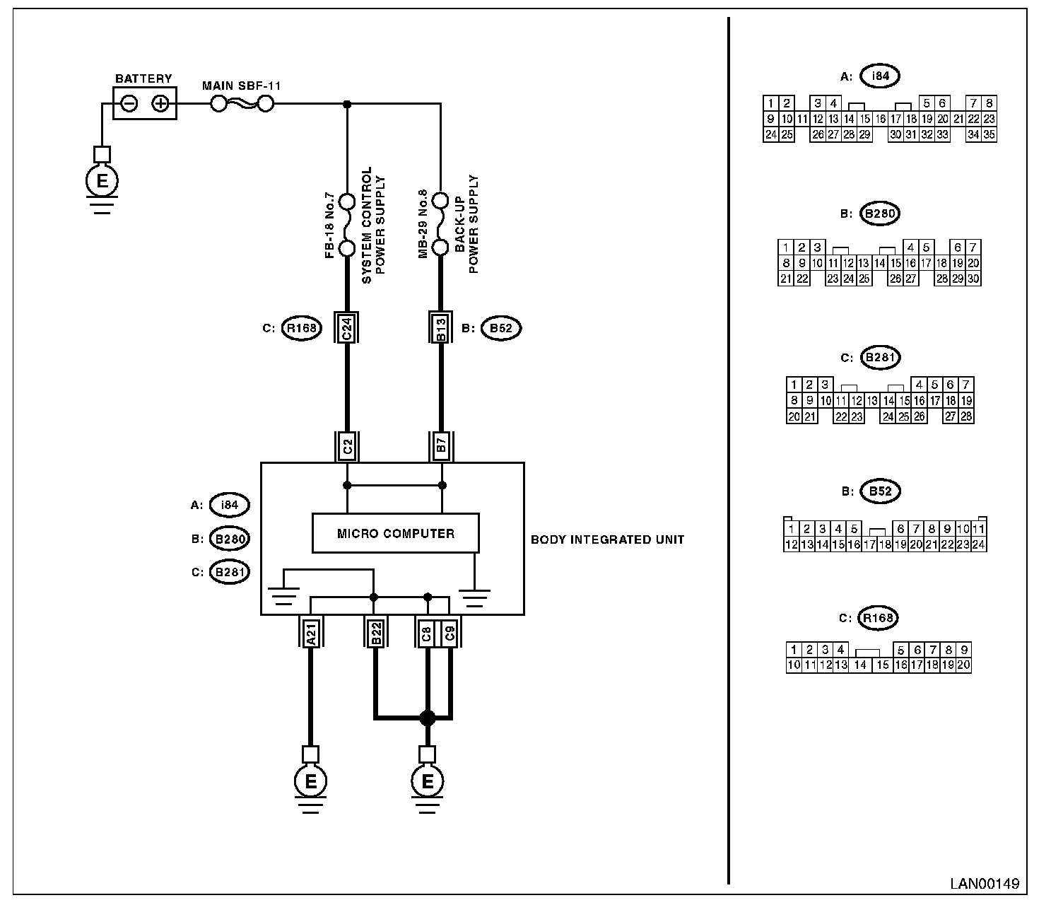 NOTE: When some B0101 BATT p/supply malfunction cont. are output at the same time, all function of body integrated unit may not function.