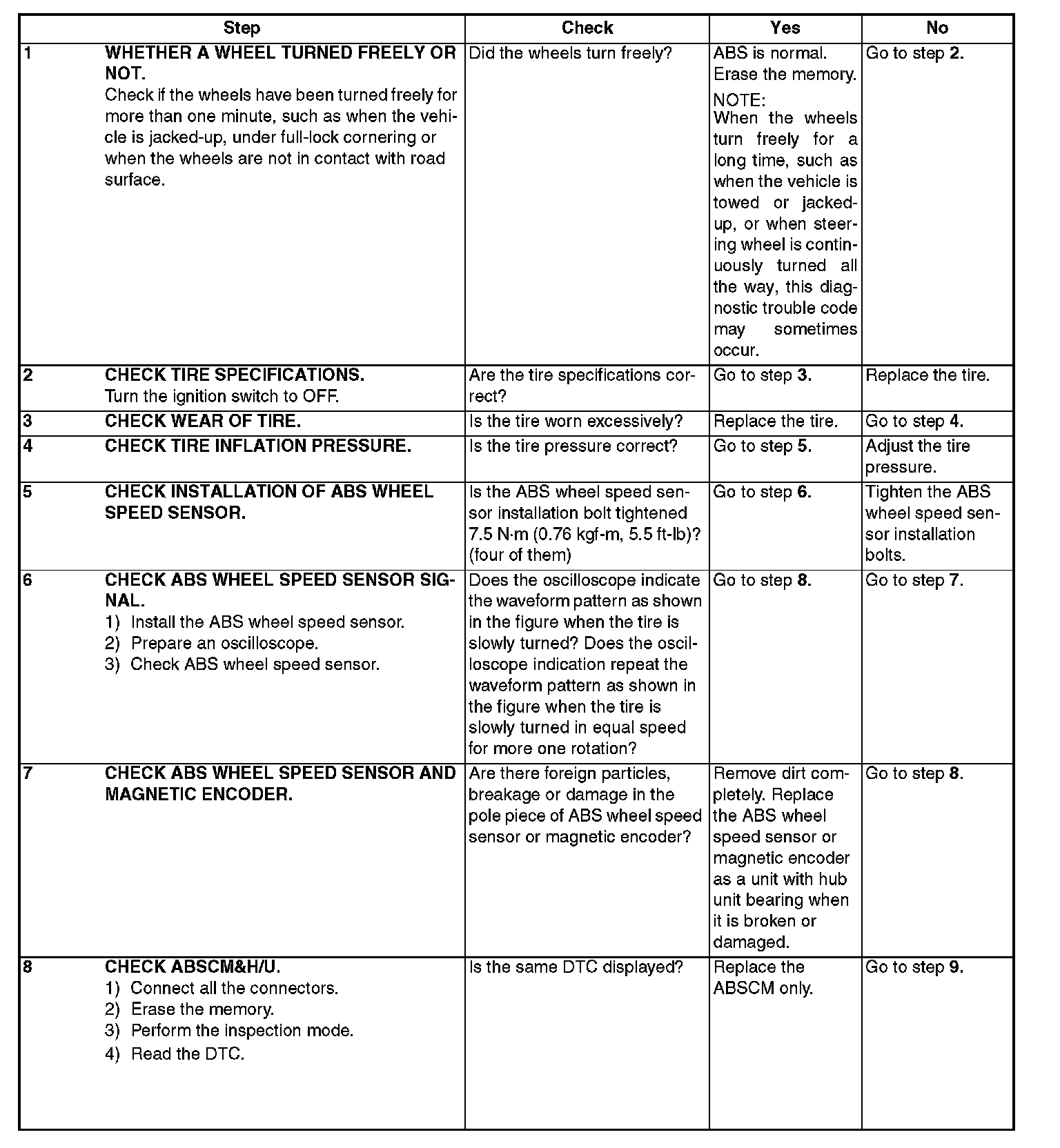 - Defective ABS wheel speed sensor signal (noise, abnormal signal, etc.)