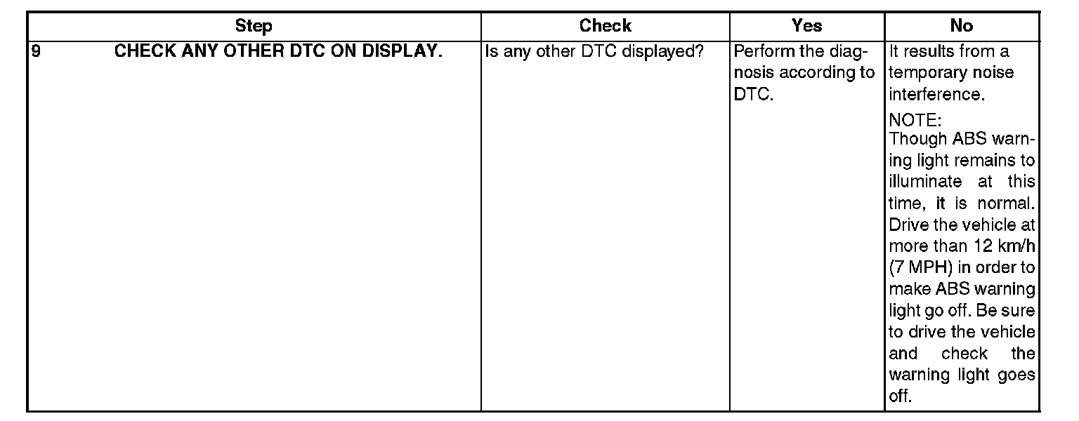 NOTE: Brake warning light comes on as well as ABS warning light.