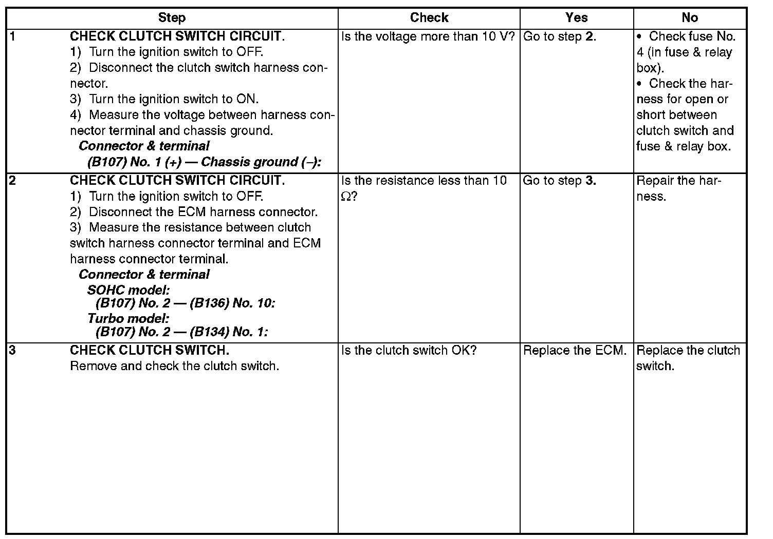 DTC 13 CLUTCH SWITCH