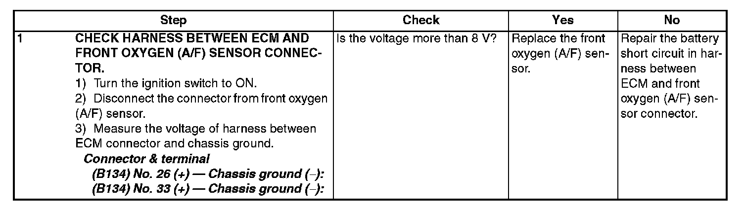 DTC P0132 O2 SENSOR CIRCUIT HIGH VOLTAGE (BANK 1 SENSOR 1)