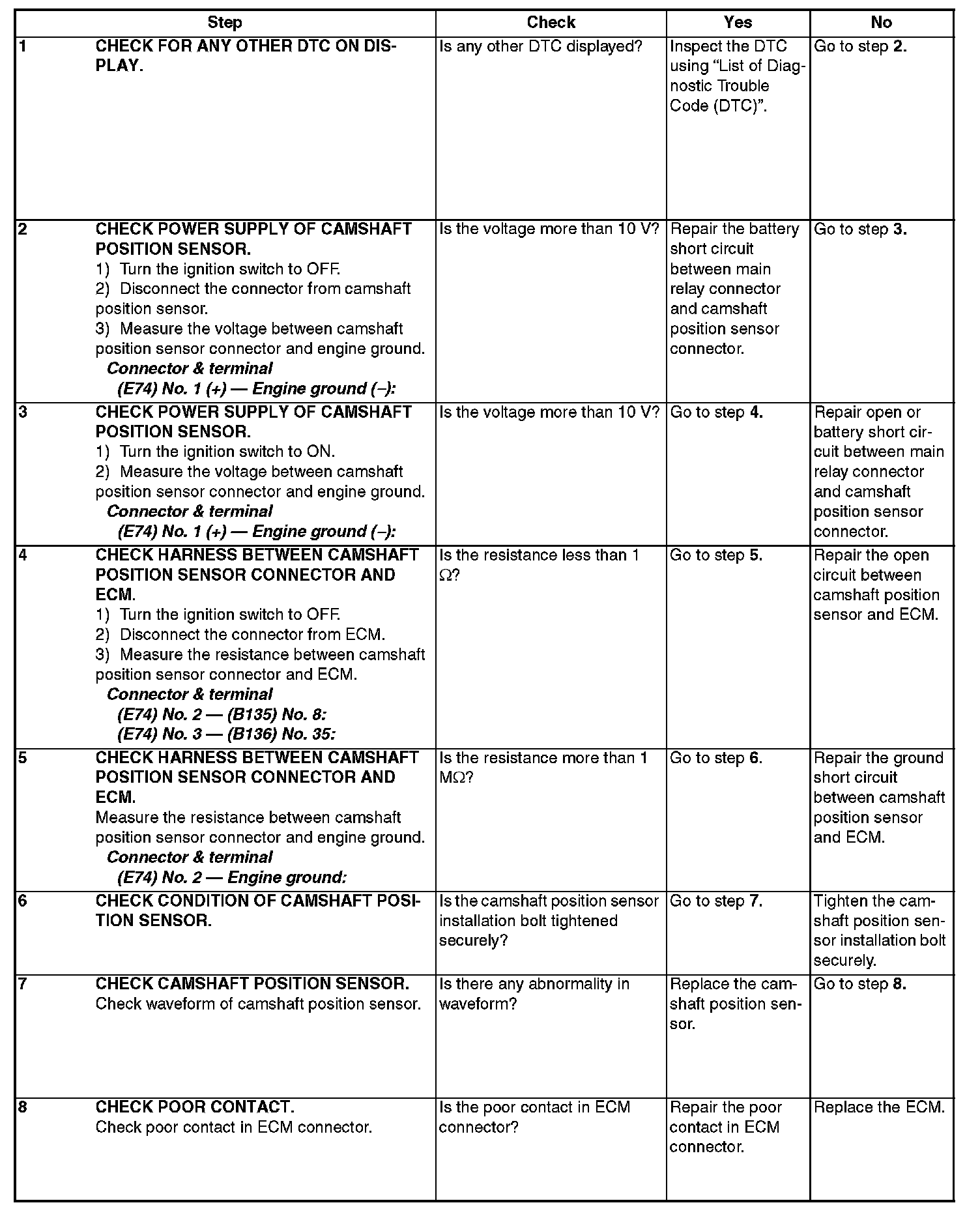DTC P0345 CAMSHAFT POSITION SENSOR "A" CIRCUIT (BANK 2)DTC DETECTING CONDITION: