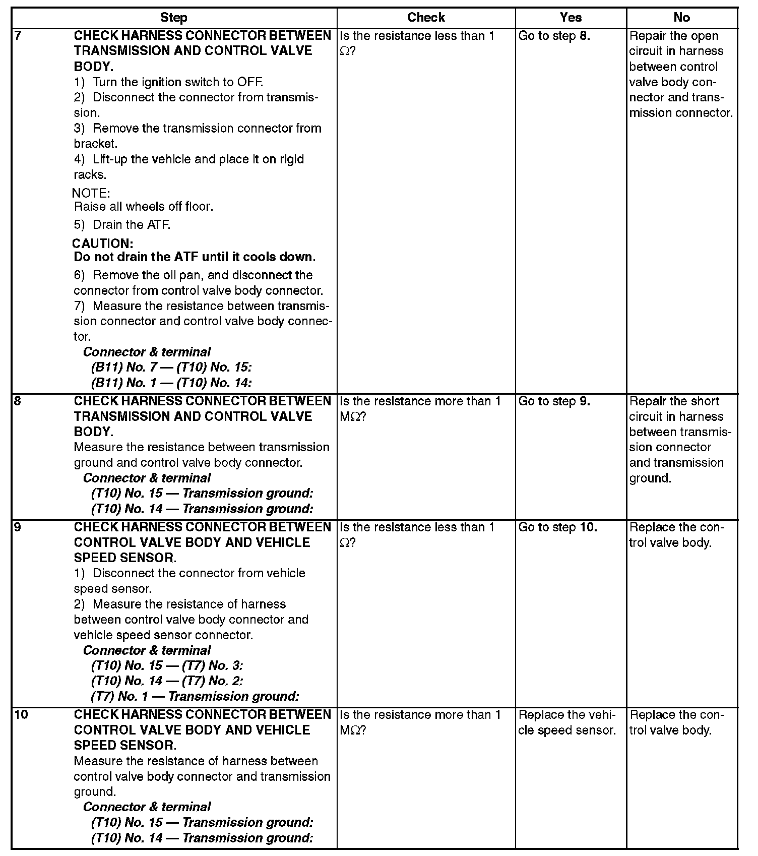 - The harness connector between TCM and vehicle speed sensor is in short or open.