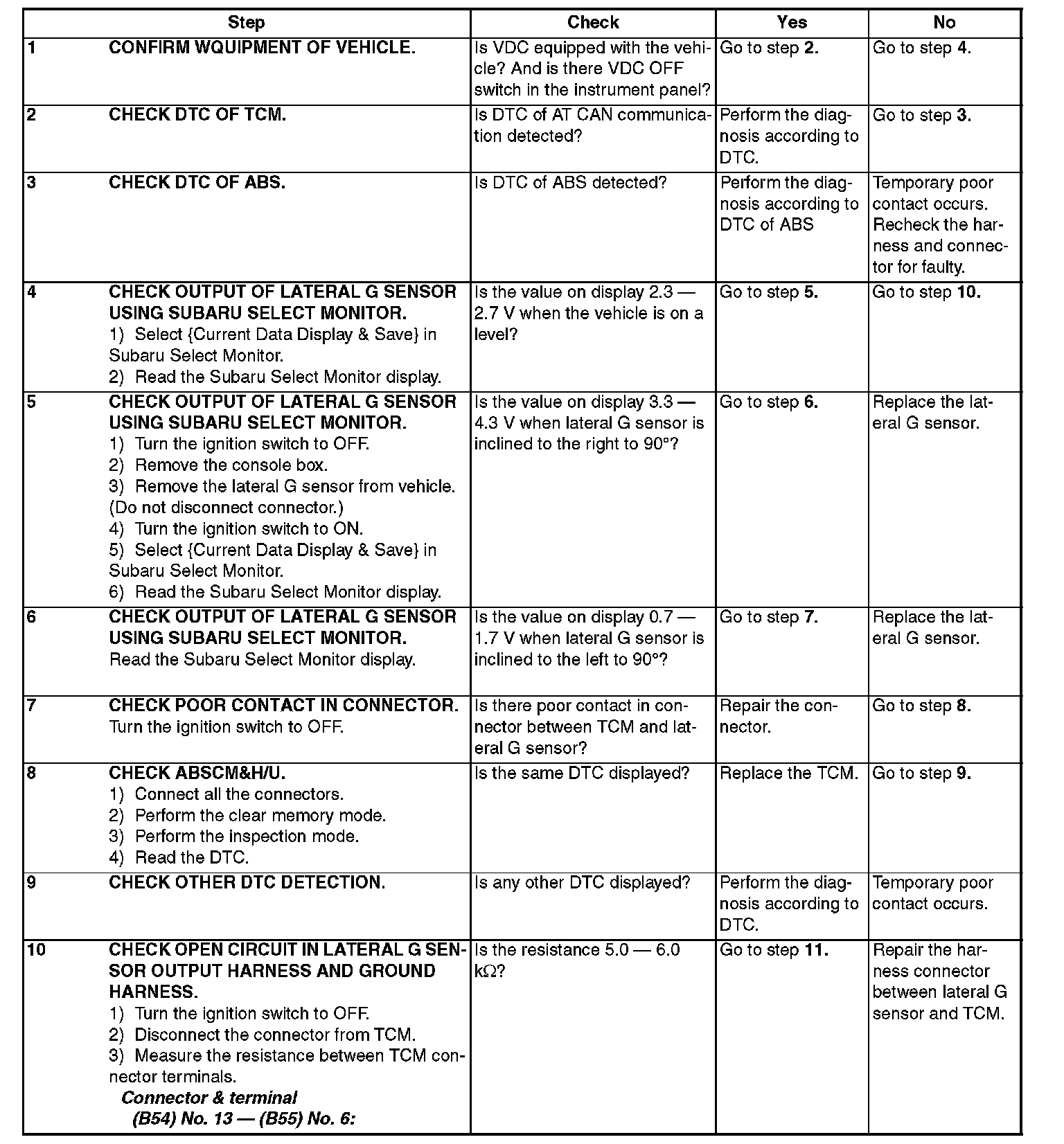 Faulty lateral G sensor output voltage