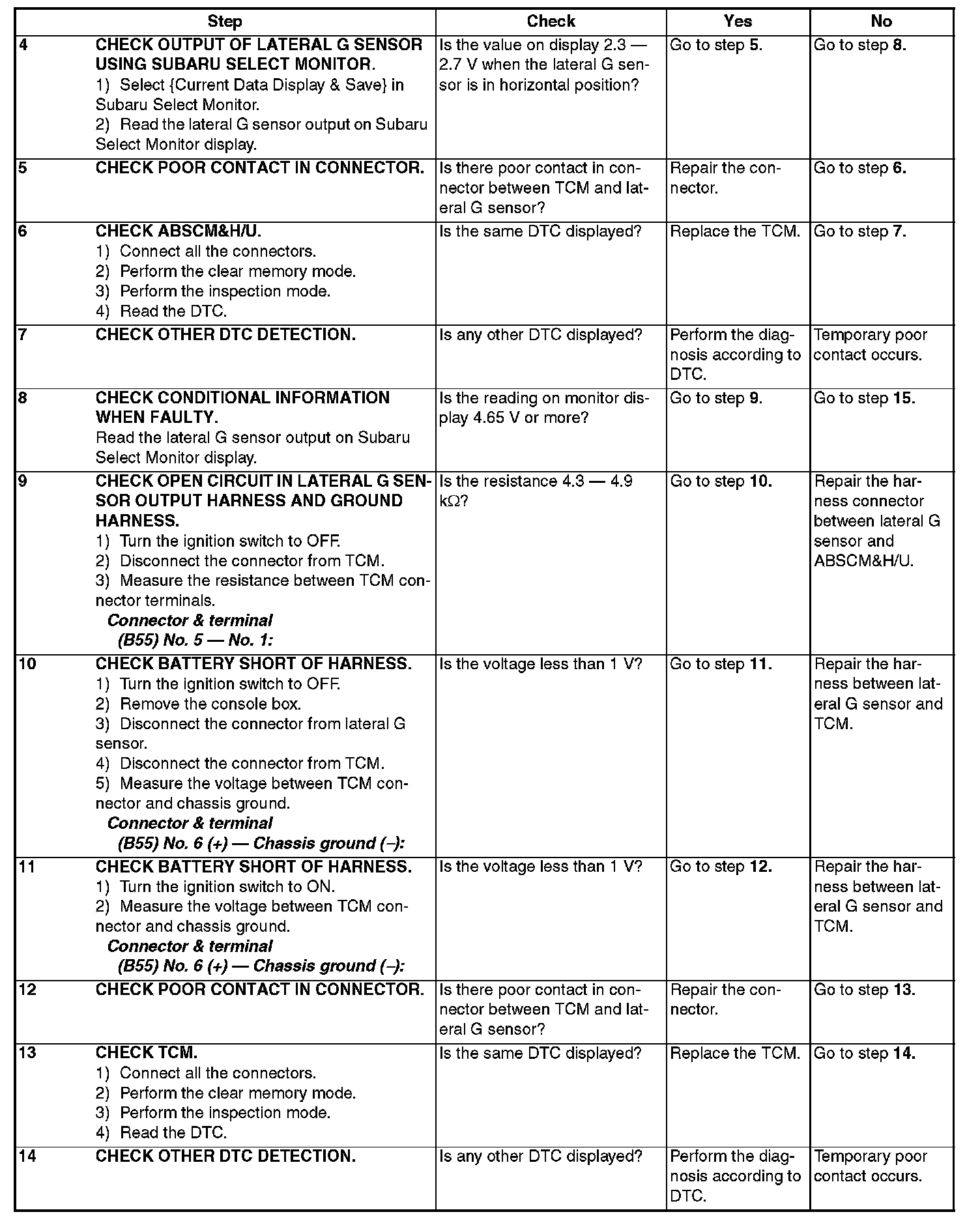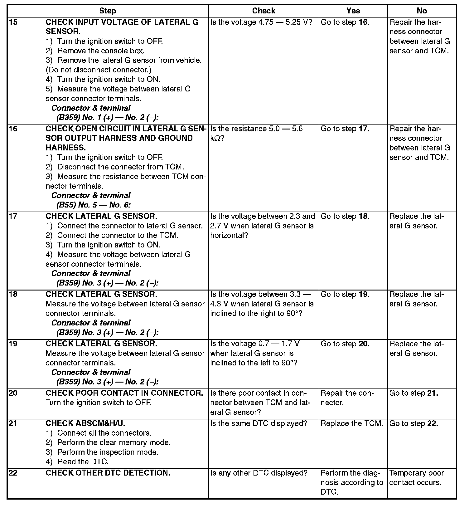 Faulty lateral G sensor output voltage
