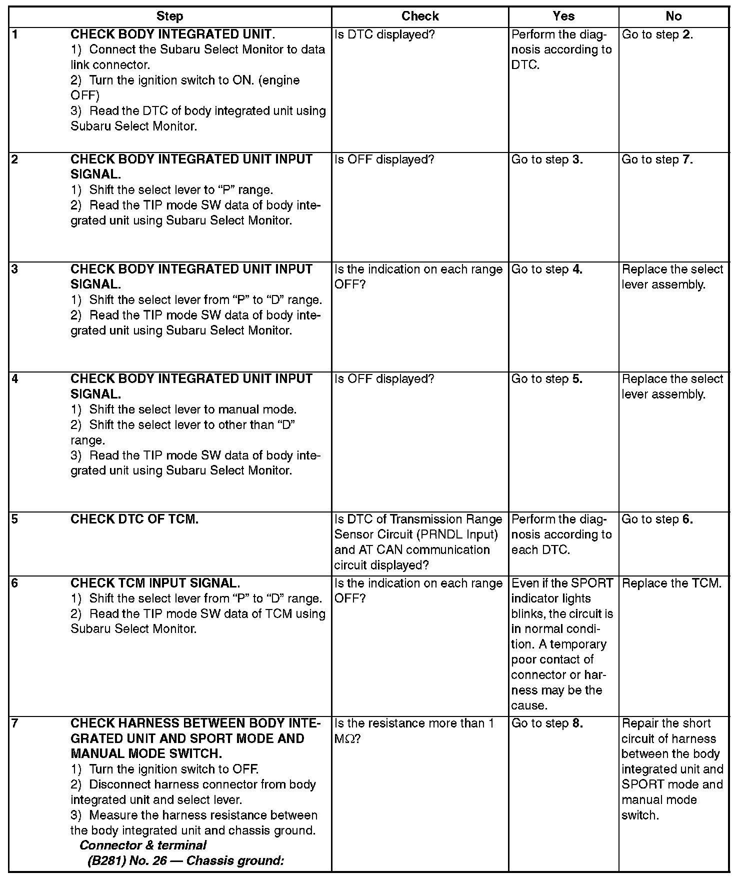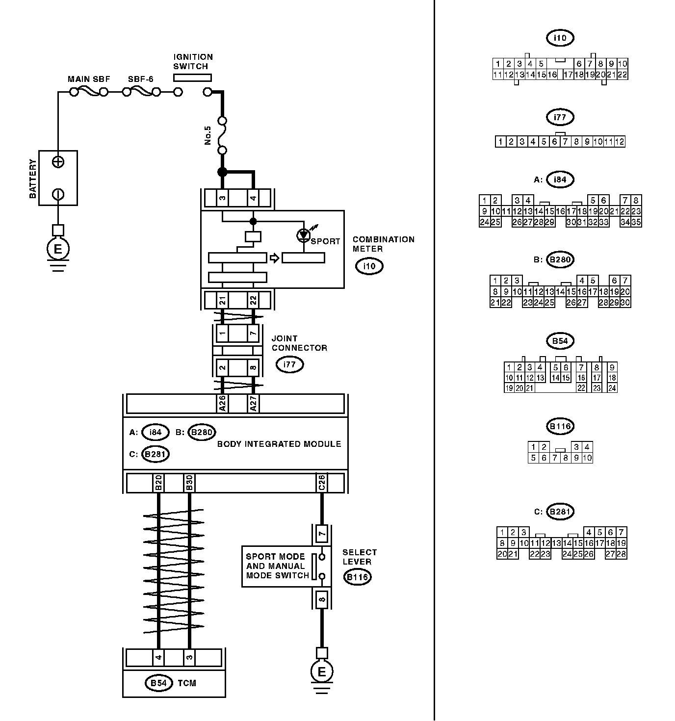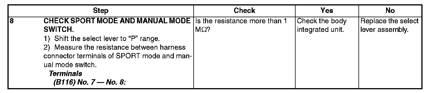 - Input signal circuit of SPORT mode and manual mode switch is open or shorted.