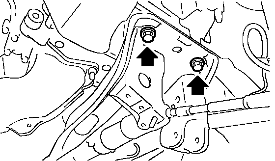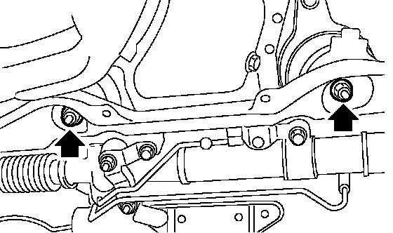 11. Support the crossmember with a jack, remove the bolts securing crossmember to body, and then gradually lower the crossmember with steering gearbox as a unit.