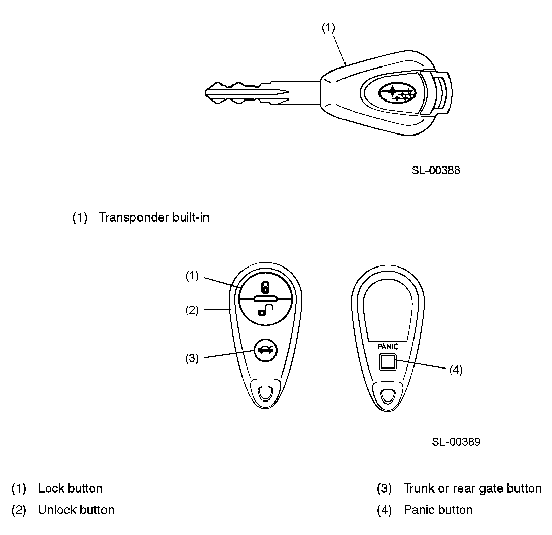 A keyless entry system with a keyfob type transmitter is introduced. On models with immobilizer system, a transponder is assembled in the key.
