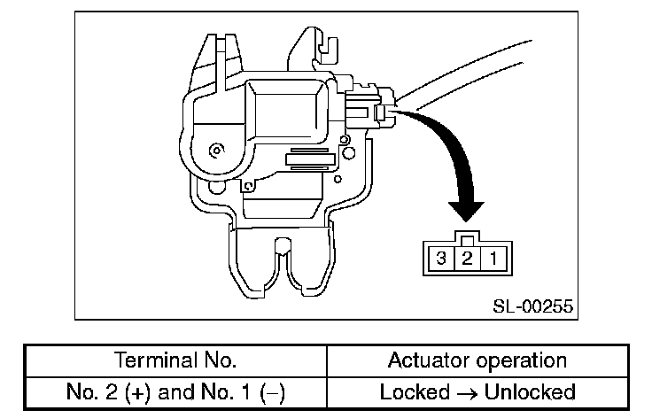 2. Connect the battery to trunk lid actuator terminals.
