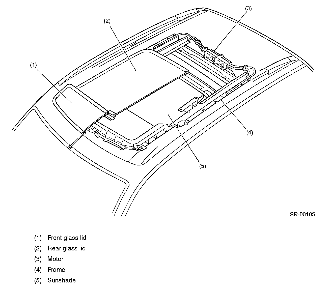 - A motor with a built-in microprocessor is used for the sunroof motor, which provides one-touch automatic opening and closing functions with a jamming prevention feature. (The system operates in auto mode when the switch is pushed.)
