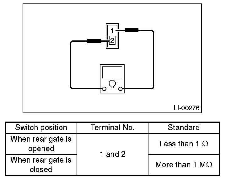 Measure the resistance between rear gate latch switch terminals.