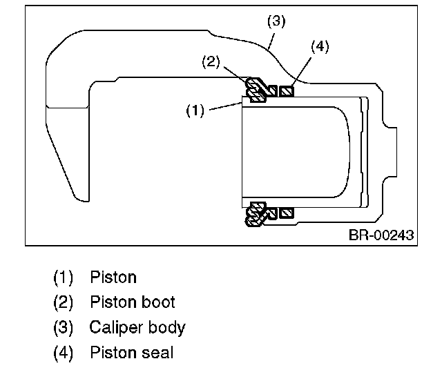 2. Apply a coat of brake fluid to the piston seal and fit piston seal in groove on caliper body.