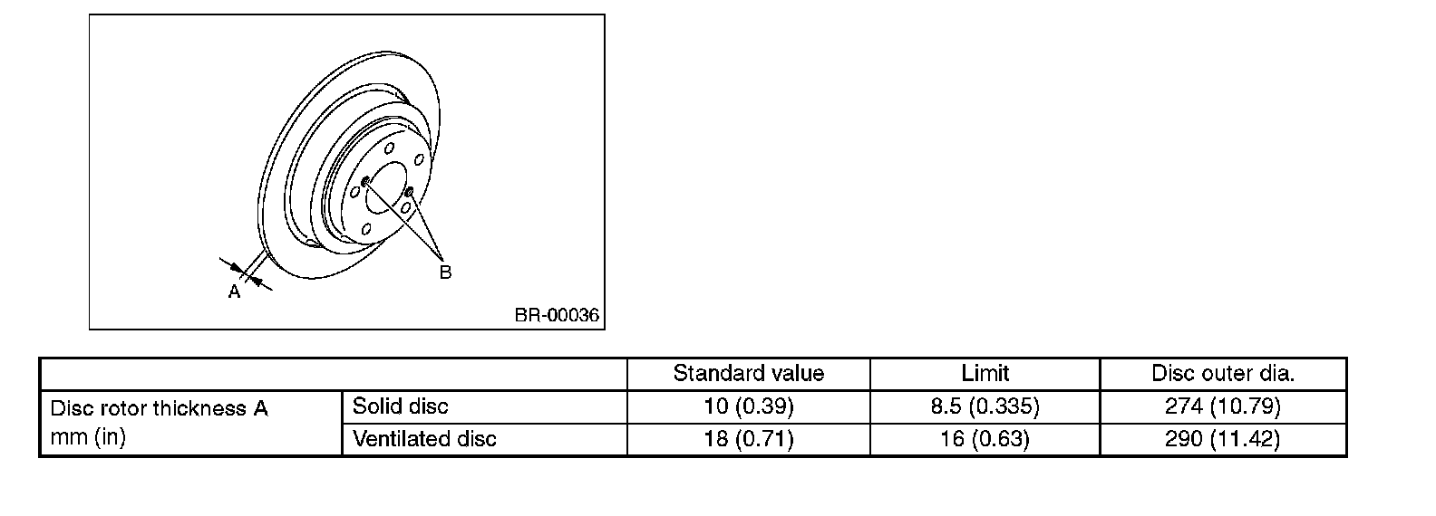 Disc rotor runout limit: 0.05 mm (0.0020 inch)