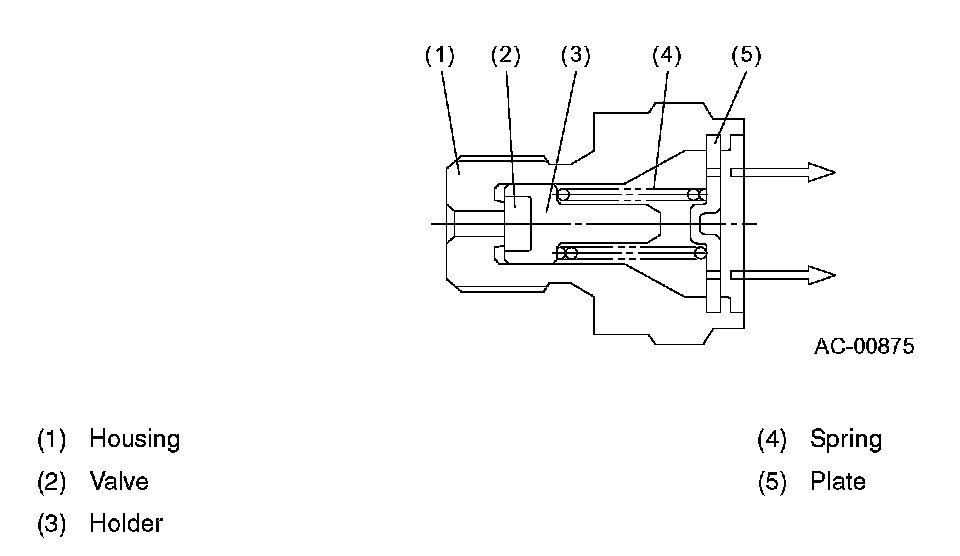 This valve opens if the pressure of the high-pressure refrigerant gas rises to a dangerously high level to release part of refrigerant into the atmosphere, thus protecting the compressor. The valve is designed to limit the amount of released gas to the necessary minimum.