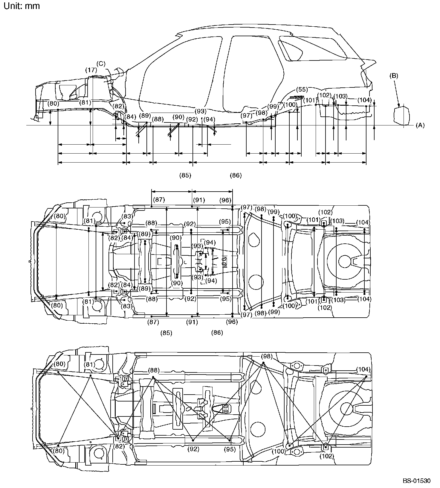 For reference point (55) Rear suspension mounting hole (symmetrical), refer to "Datum Dimensions".