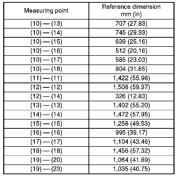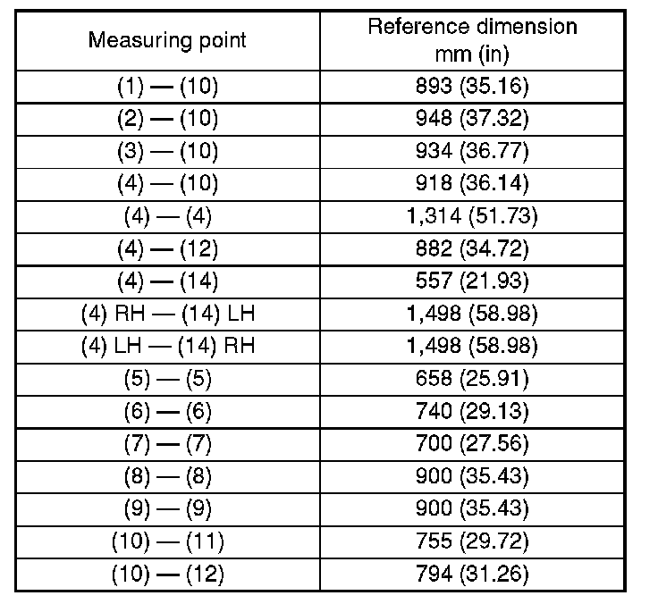 The reference points (1) and (10) are at the body center, while the other points are left-right symmetrical.