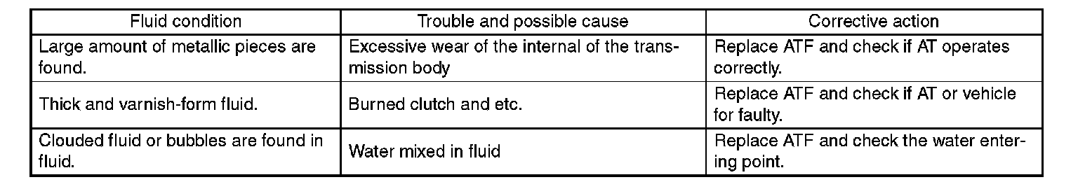 When replacing ATF check the inside condition of transmission body by inspecting the drained ATF.