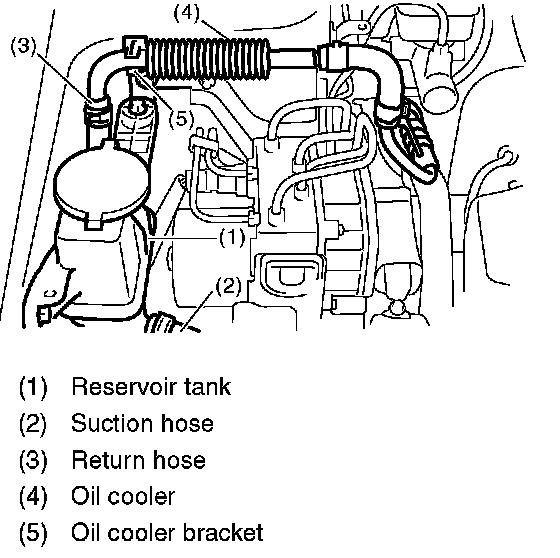 3. Connect the suction hose and return hose to reservoir tank. Install the oil cooler to oil cooler bracket.