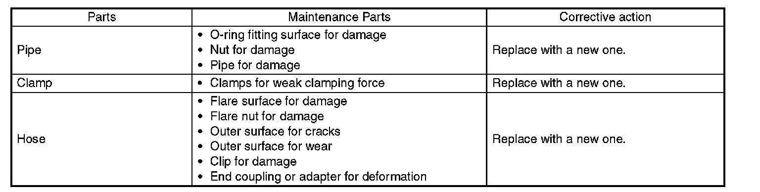 NOTE: It is likely that although one judges fluid leakage, there is actually no leakage. This is because the fluid spilt during the last maintenance was not completely wiped off. Be sure to wipe off spilt fluid thoroughly after maintenance.