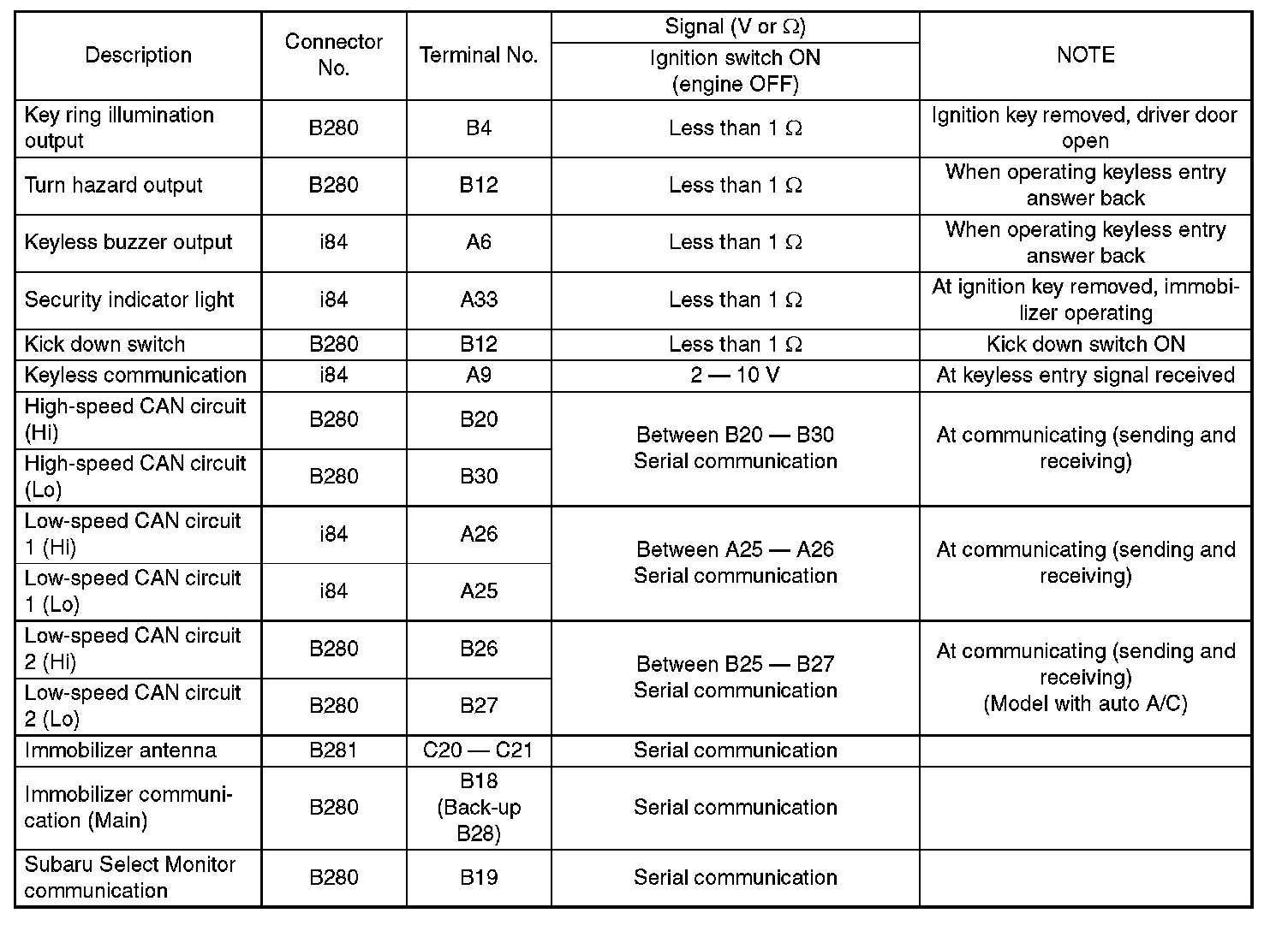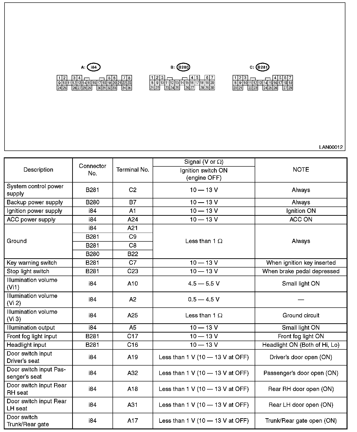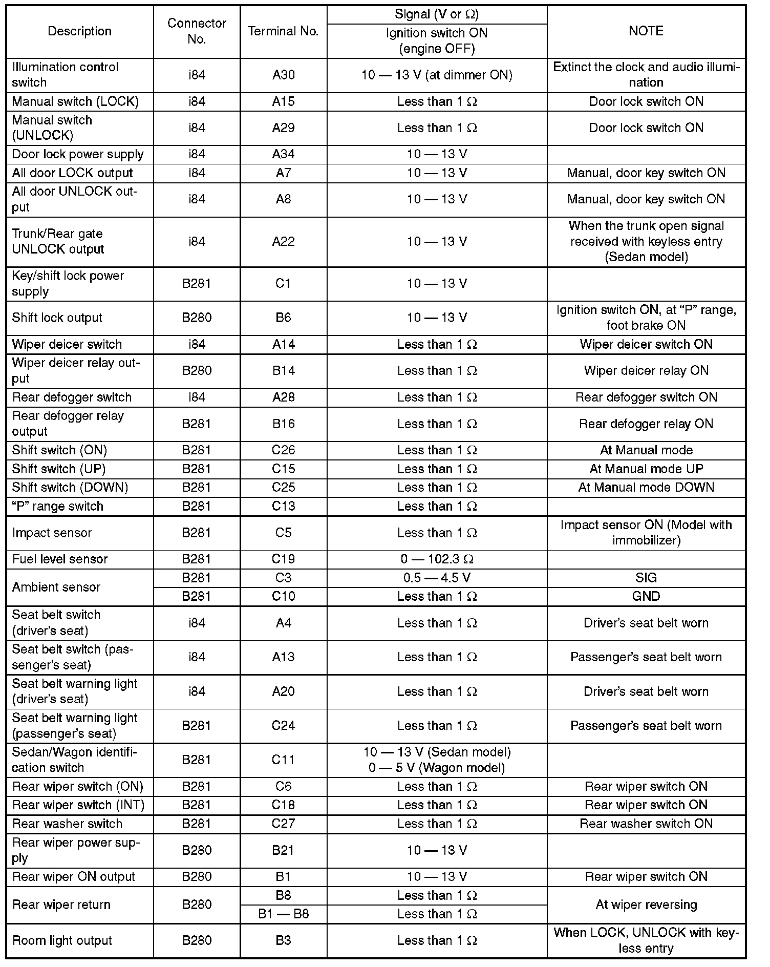 Pinout Values and Diagnostic Parameters