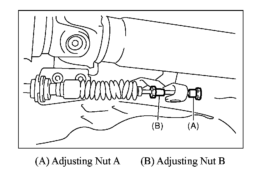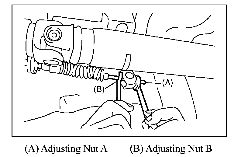 1) With the select lever already in the "N" range, loosen the adjusting nuts A and B on both sides.