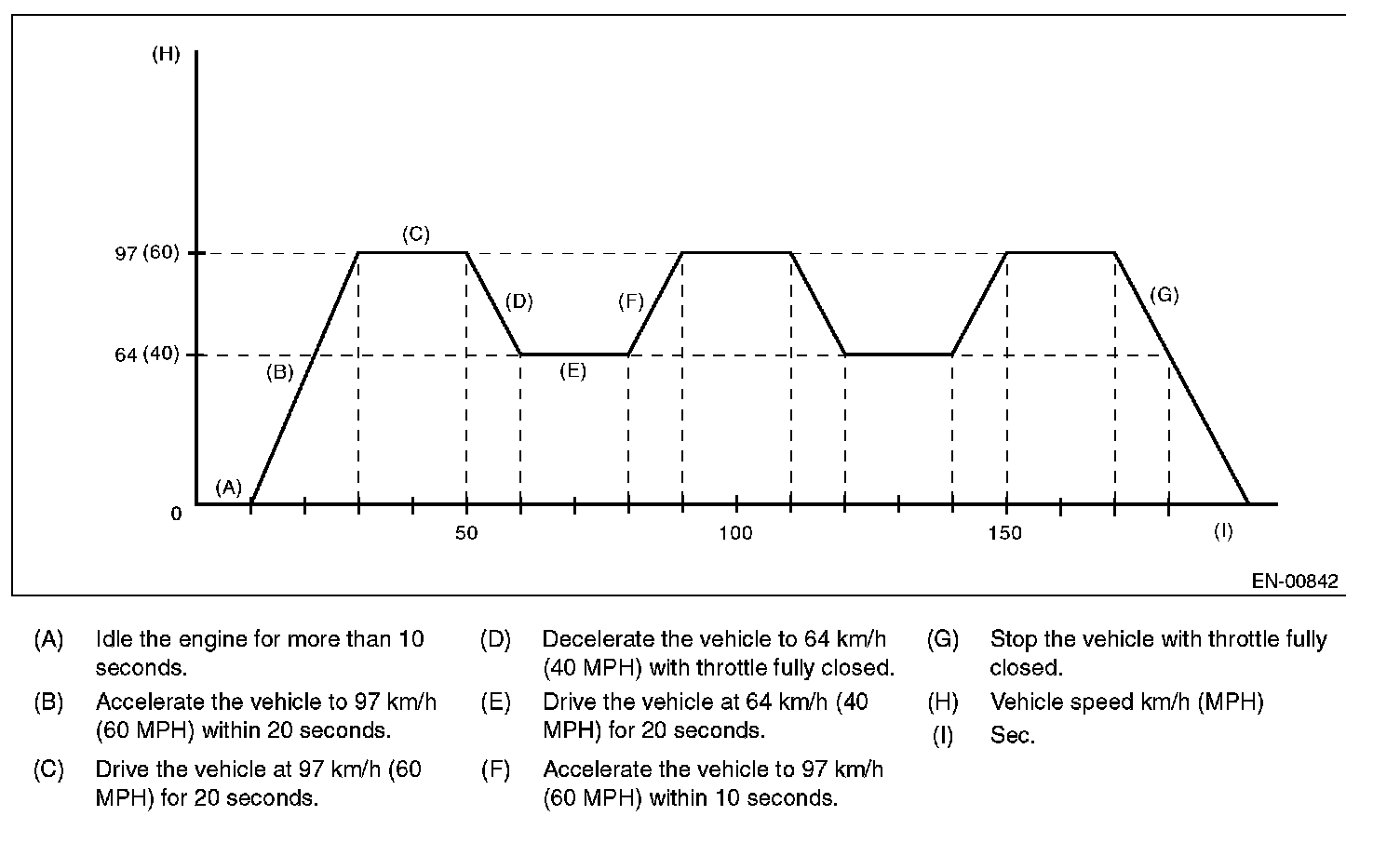 2. DRIVE CYCLE A (AFTER RUNNING 20 MINUTES AT 80 KM/H (50 MPH), IDLE ENGINE FOR 1 MINUTE.)