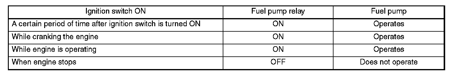 FUEL PUMP CONTROLThe ECM controls the operation of the fuel pump through the fuel pump control unit, based on signals from the crankshaft position sensor. To improve safety, a "fuel pump stop signal" is sent from the ECM to the fuel pump control unit to stop the fuel pump if the engine stalls while the ignition switch is ON.