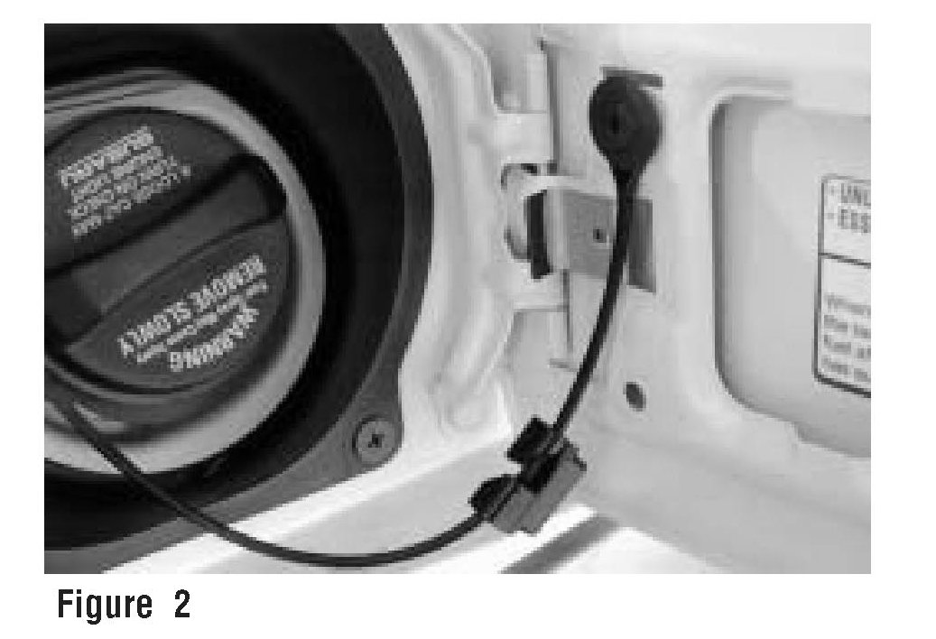 2) Route fuel cap tether through upper and lower opening of fuel cap tether clip (see Figure 2).