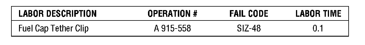 If you encounter a customer complaint that the fuel door will not open, there is the possibility that the fuel cap tether is catching on the fuel door clip. To correct this condition, a fuel cap tether clip will need to be installed.