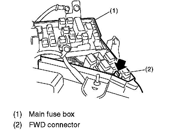1. Install the spare fuse to the FWD connector located in the main fuse box for the model without AT VTD.