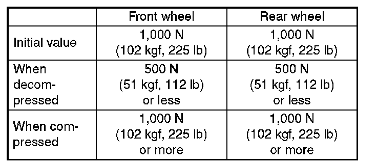 8. Read values indicated on the brake tester and check if the fluctuation of the values between decompression and compression meets the standard values.