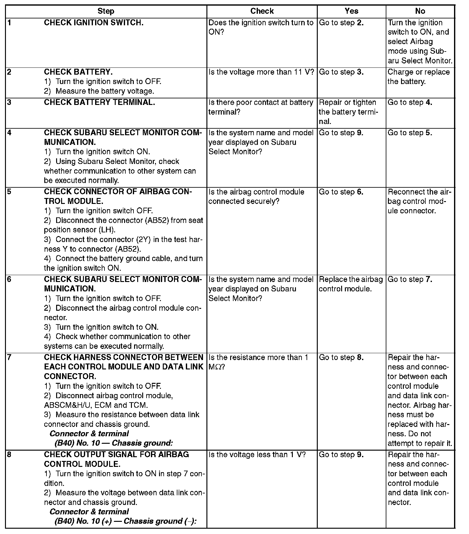Communication is impossible between Airbag control module and Subaru Select Monitor.