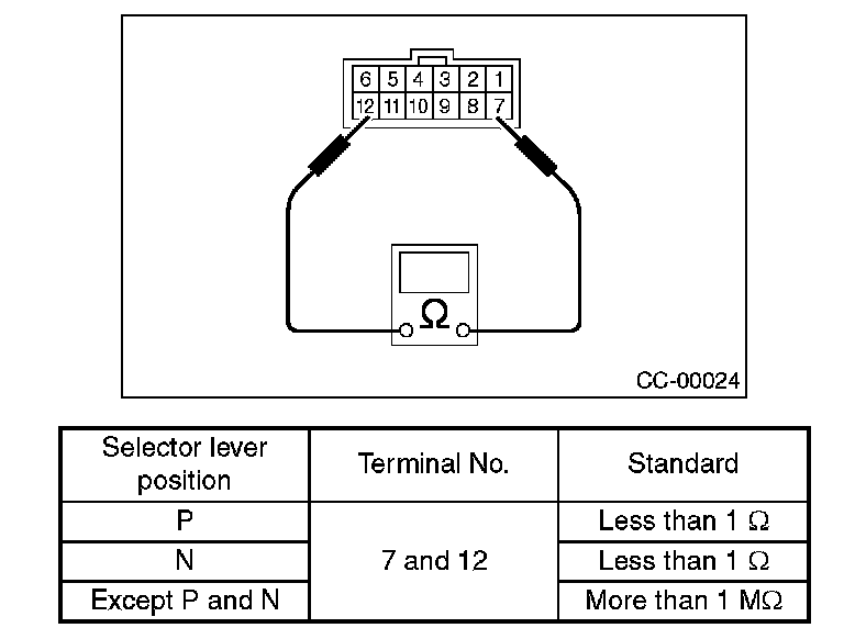 If NG, replace the inhibitor switch.