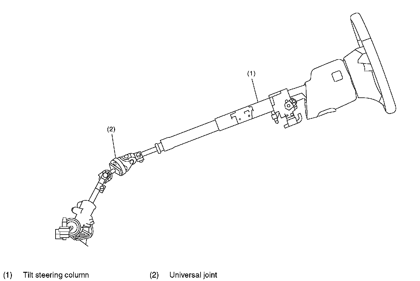 ^ Be sure to remove the universal joint before removing steering shaft assembly installing bolts when removing steering shaft assembly or when lowering it for servicing of other parts.