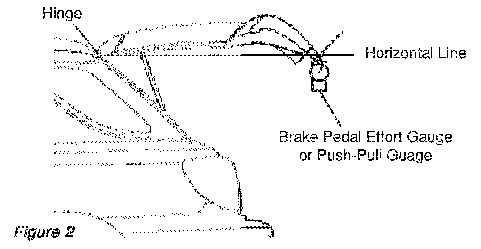 Note: If using a brake pedal effort gauge, it is advisable to put duct tape on the gauge on the area that will come in contact with the vehicle. Doing so will protect the painted surface of the vehicle's rear gate