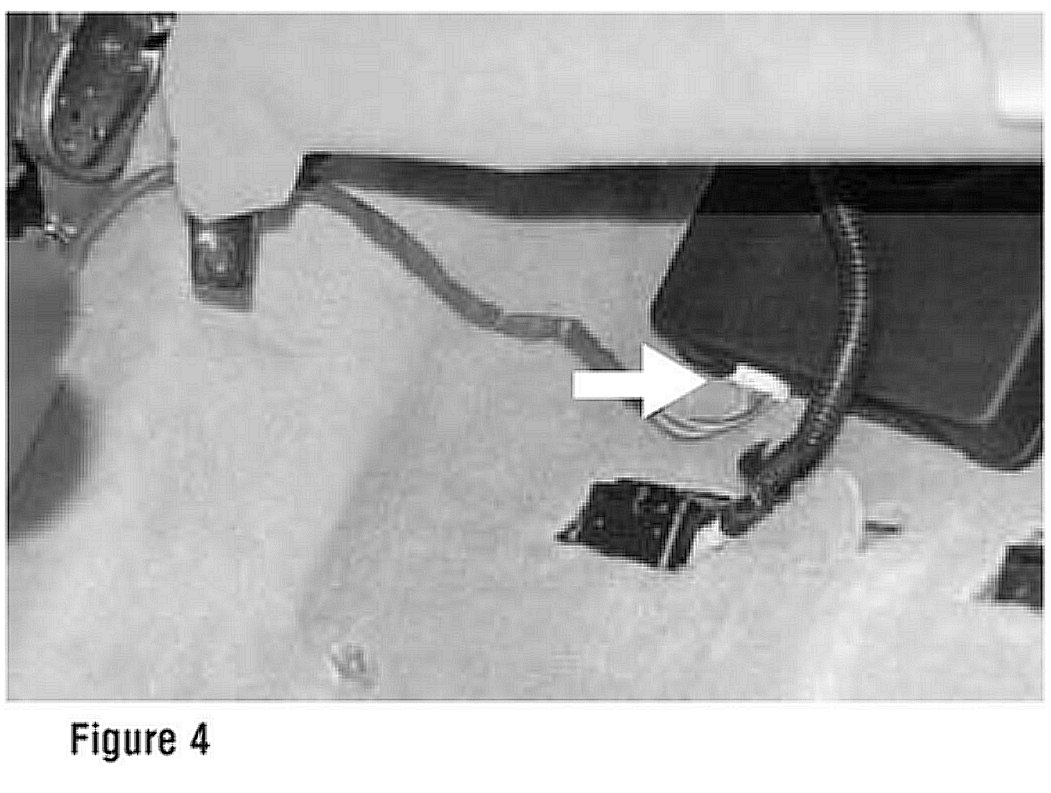 9) Tilt driver's seat rearward to gain access to sub-woofer wiring harness connector and disconnect connector (see Figure 4).