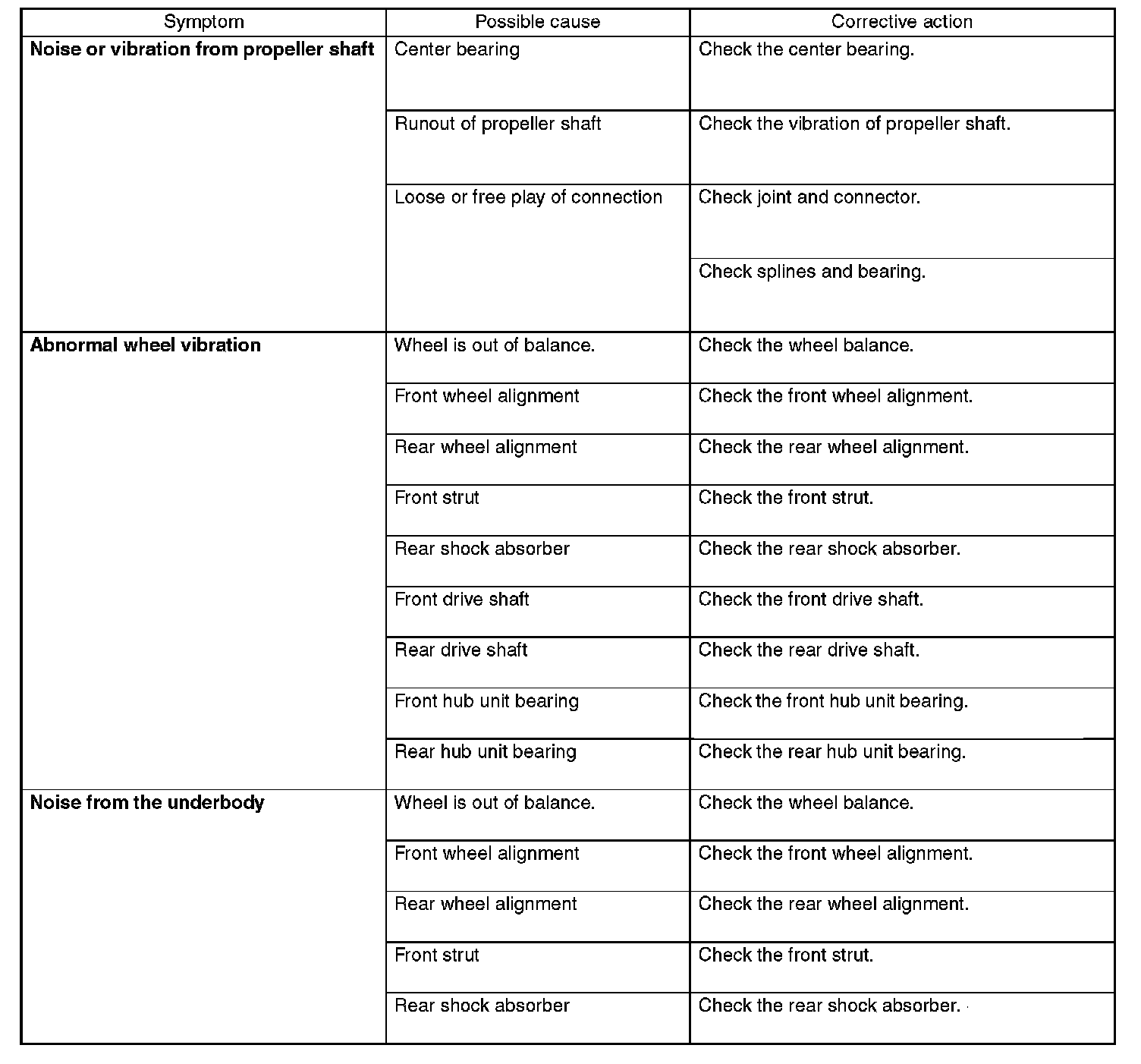 Drive/Propeller Shafts, Bearings and Joints: Testing and Inspection