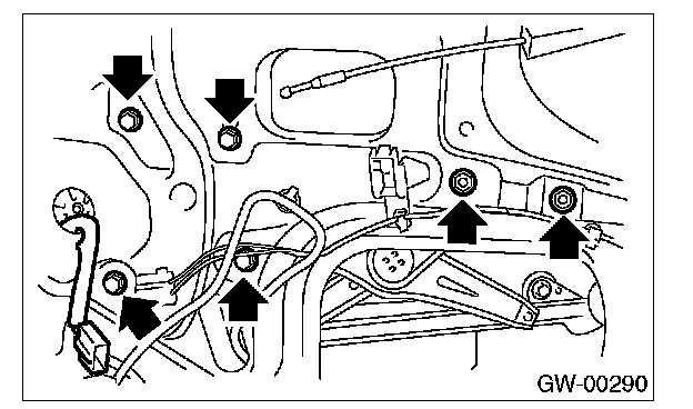 4. Remove the four bolts and two nuts to remove regulator assembly.