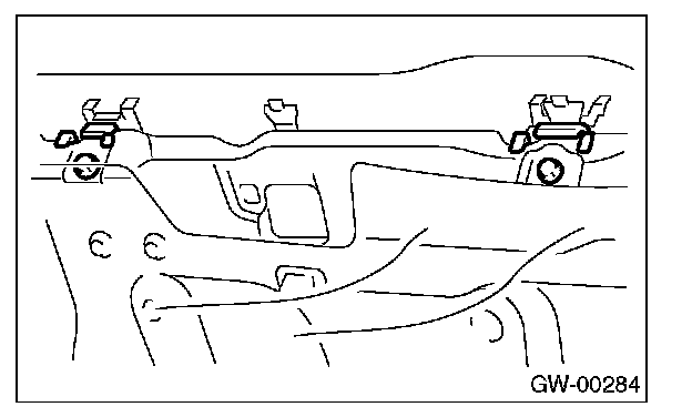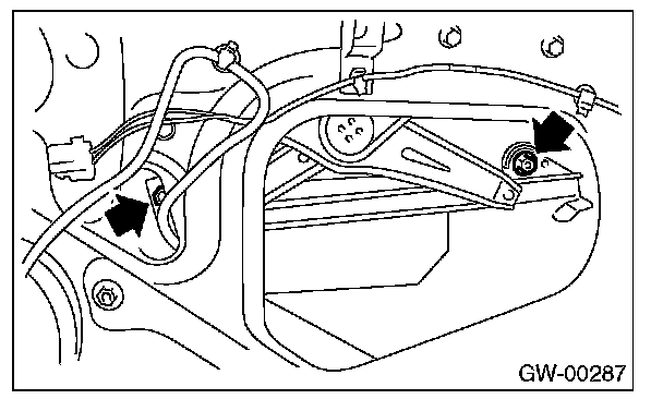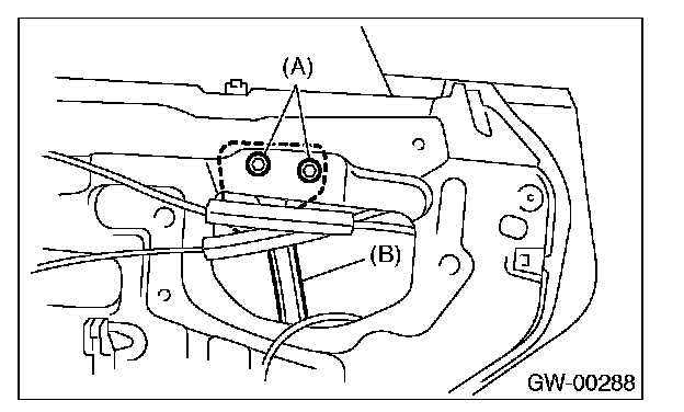 6. Operate the power window switch to move the glass to position shown in the figure, and then remove the two nuts through service holes.