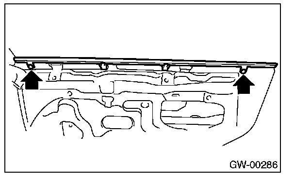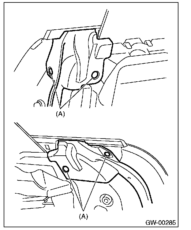 4. Remove the clips (A), and remove the front end and rear end of weather strip.