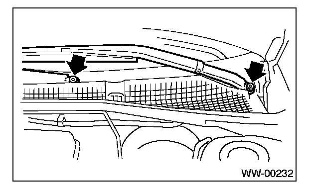 CAUTION: When replacing wiper blades or etc., be sure to stand up the driver side wiper arm first, then passenger side wiper arm next. Also, when putting the wiper arms back, be sure to start with passenger side first, then driver side next. Doing this in the reverse order may result in damage of passenger side wiper arm by hitting with driver side wiper blade.