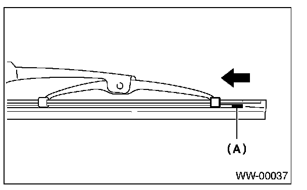 2. Make sure the wiper rubber is securely fastened to the pull stopper (A).