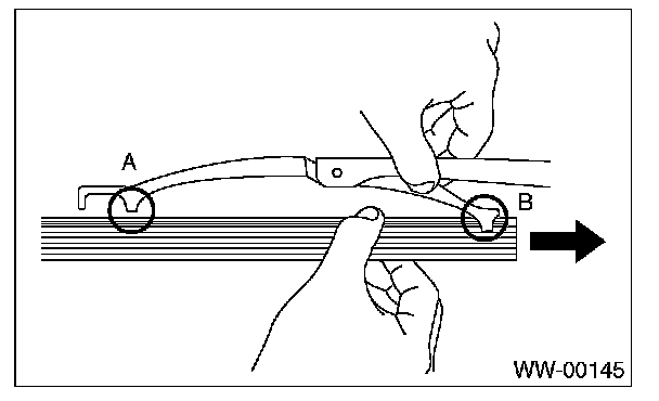 Pull side (A) of the wiper rubber stopper and remove the rubber from blade assembly.