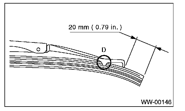 2. Insert the wiper rubber until its top end protrudes approx. 20 mm (0.79 in) from stopper D.